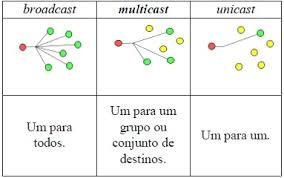 - Simples, envia pacotes para todas as portas (broadcast).